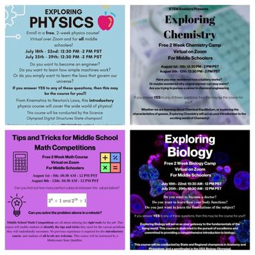 Seeing a need for students to be exposed to STEM, Vishnu Aravind and Medha Aravind formed our organization in 2020 during the pandemic to provide FREE courses designed to teach the fundamentals of various STEM related subjects. We've consistently grown since then, all thanks to the helping hands of our accomplished students.